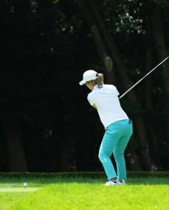 上野菜々子のドライバースイング(斜め前方)|トップ