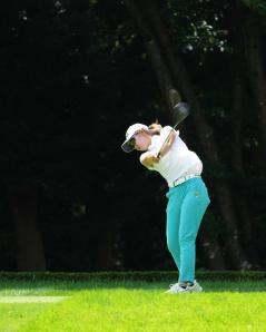 上野菜々子のドライバースイング(斜め前方)|フォロー①
