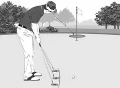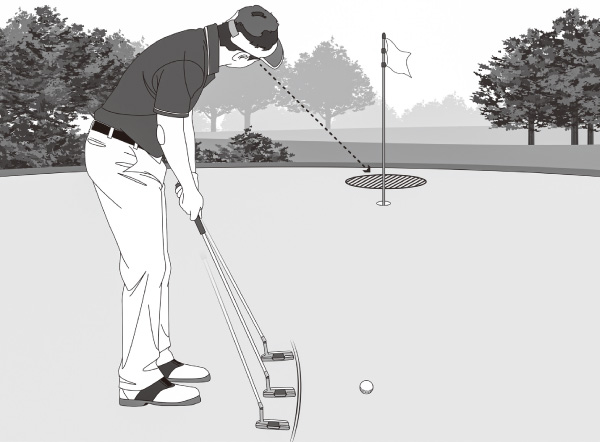ロングパットは離れた人に向かってボールを下手投げでトスするように、目標を見ながら腕を振る大きさやスピードをイメージするのがコツ。そこに思考が入ってくる余地はないのです。