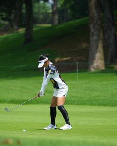 吉本ここねのアイアンスイング(斜め前方)|インパクト
