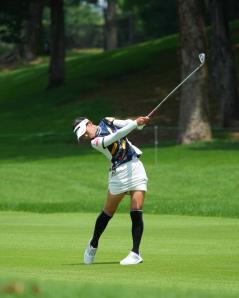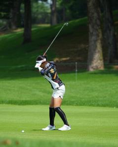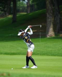吉本ここねのアイアンスイング(斜め前方)|フォロー①