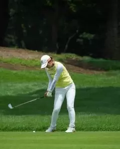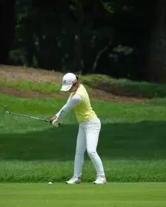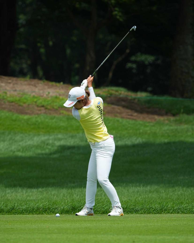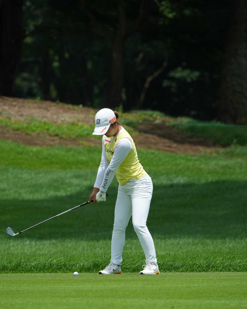 高橋彩華のアイアンスイング(斜め前方)|インパクト