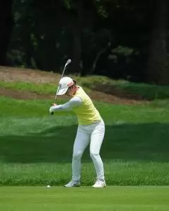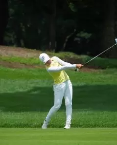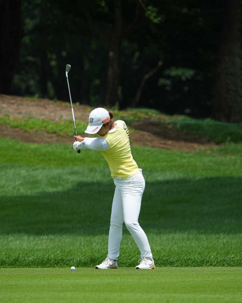 高橋彩華のアイアンスイング(斜め前方)|トップ