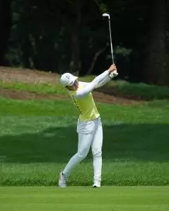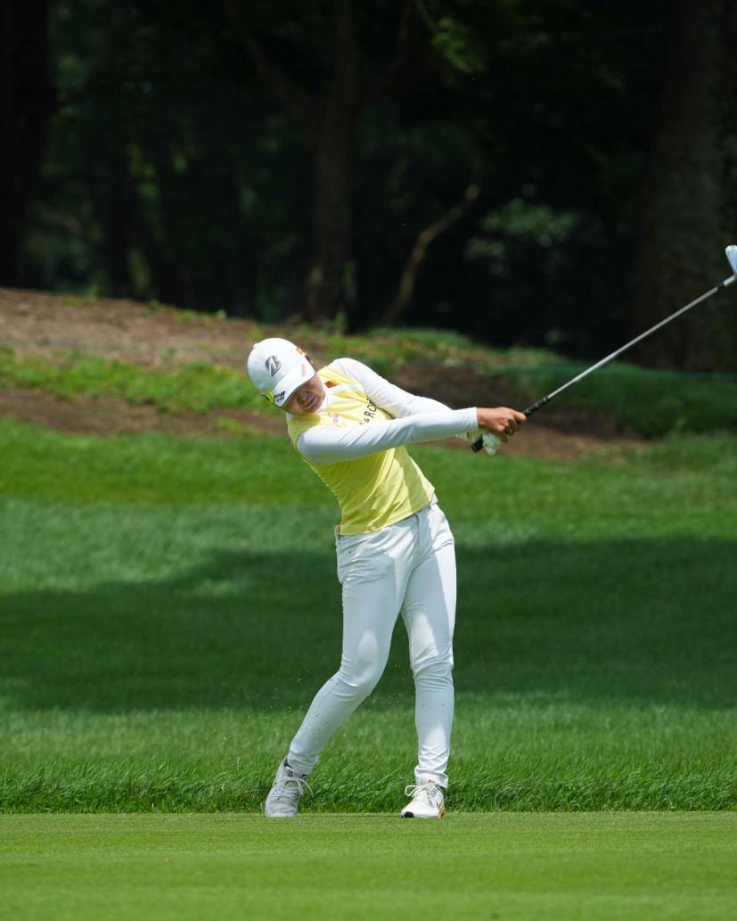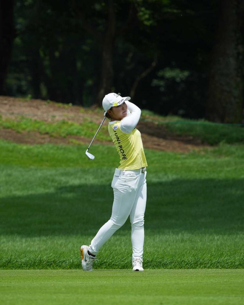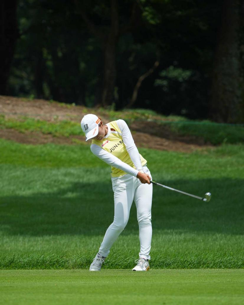 高橋彩華のアイアンスイング(斜め前方)|フォロー②