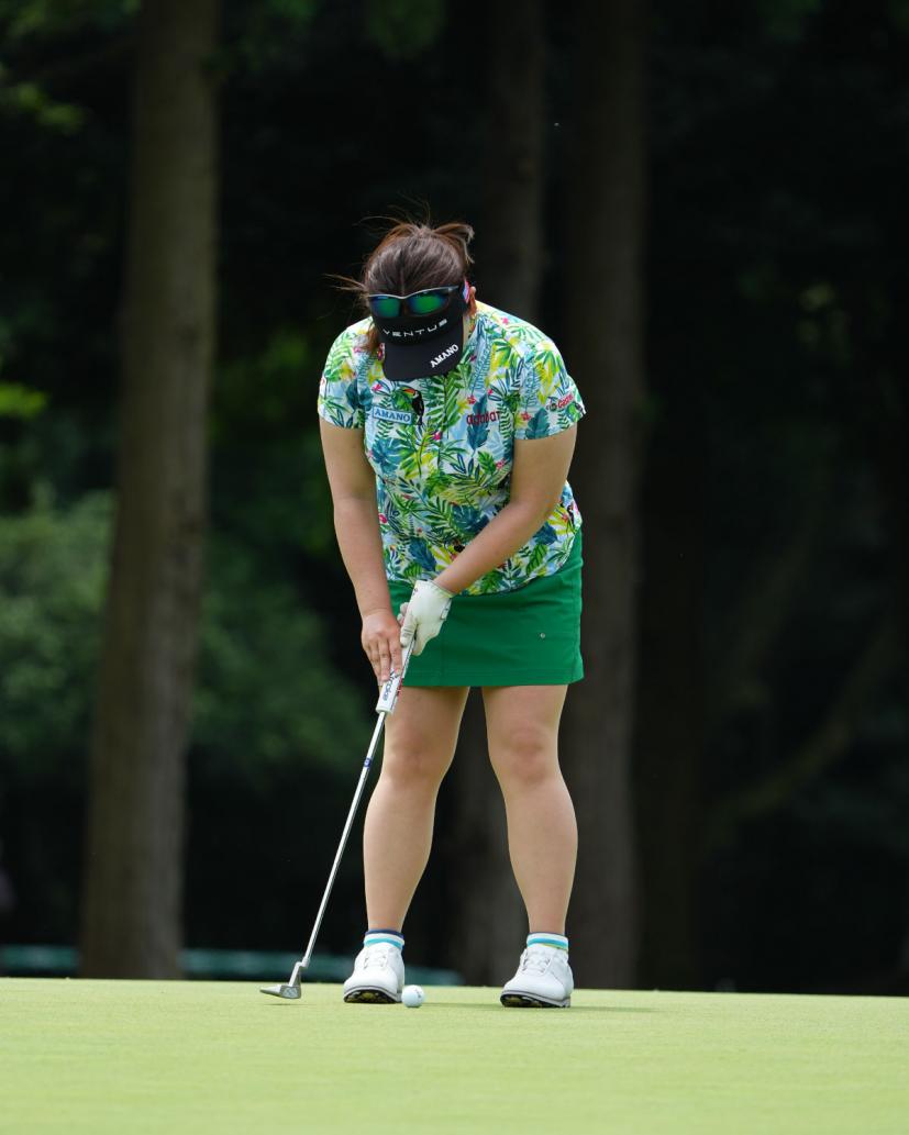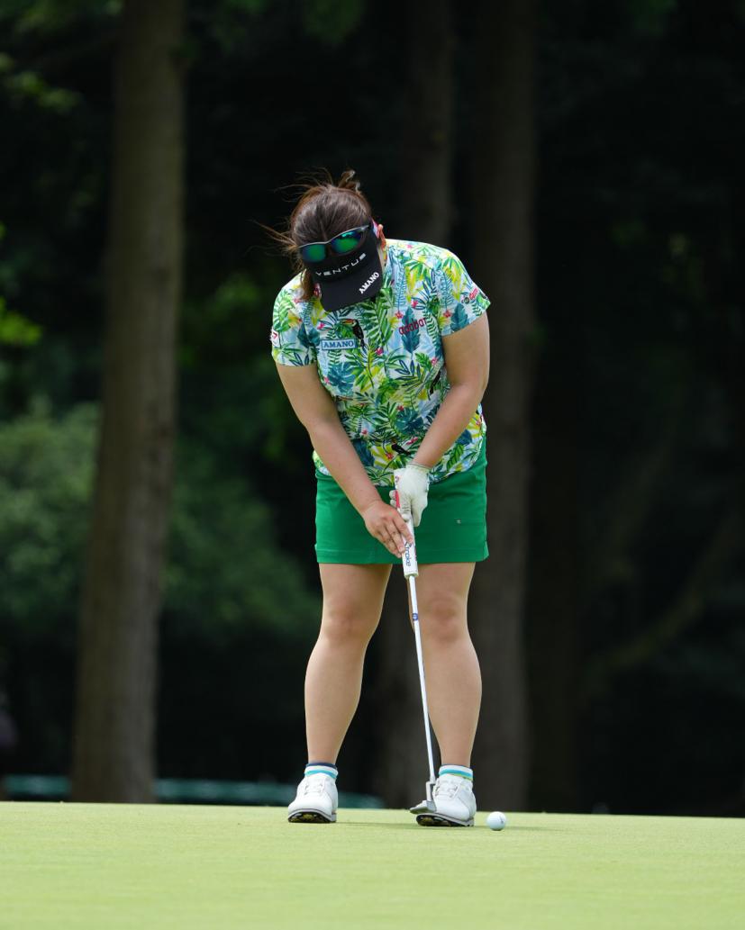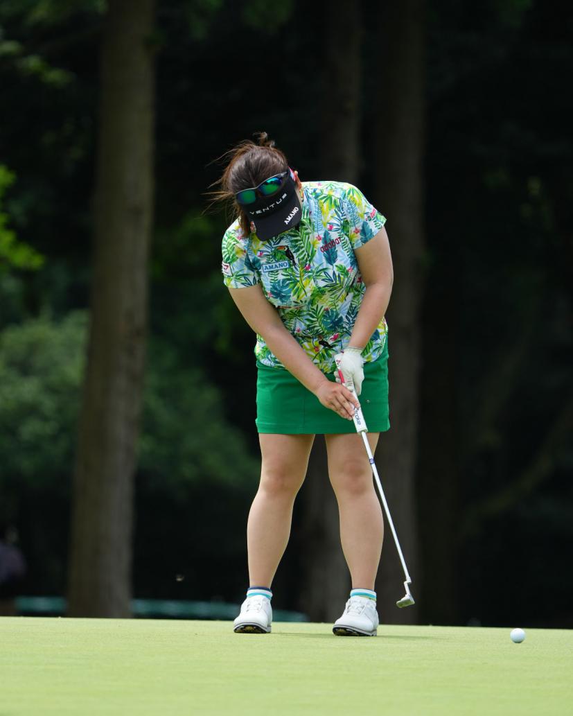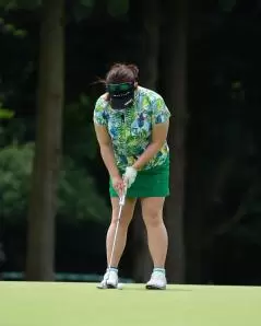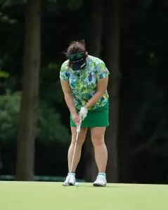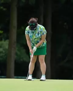 吉田弓美子のパッティングストローク(正面)|フォロー①