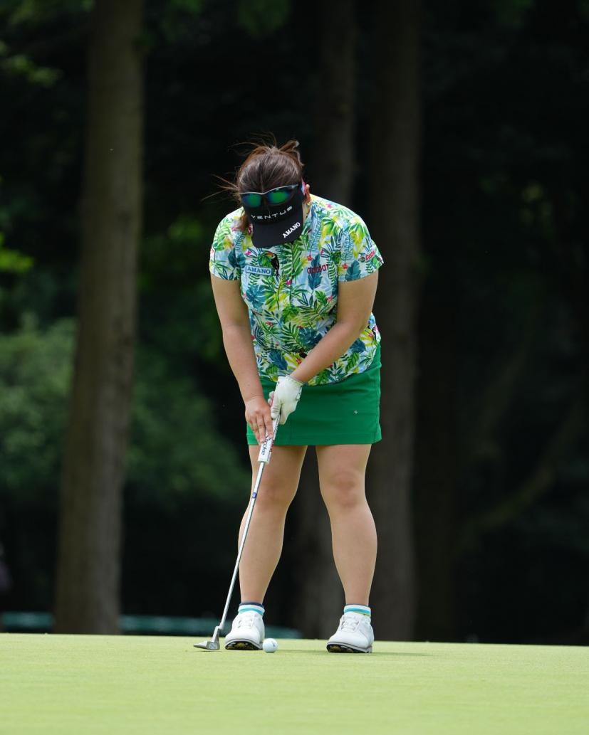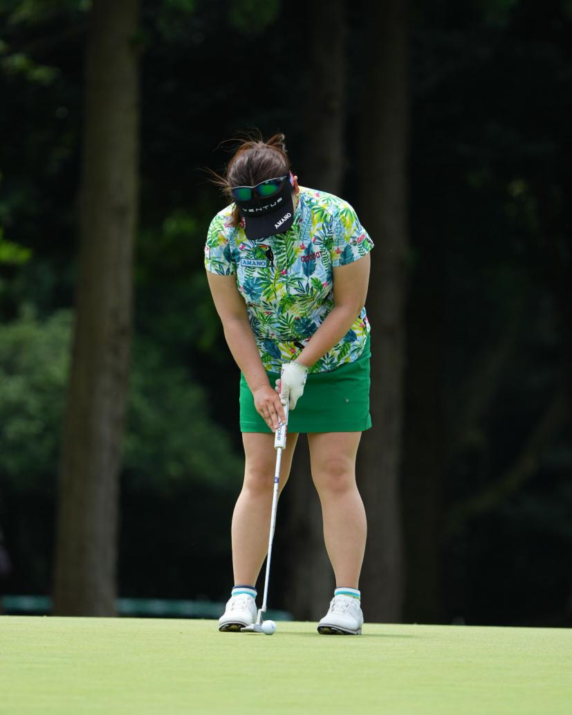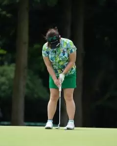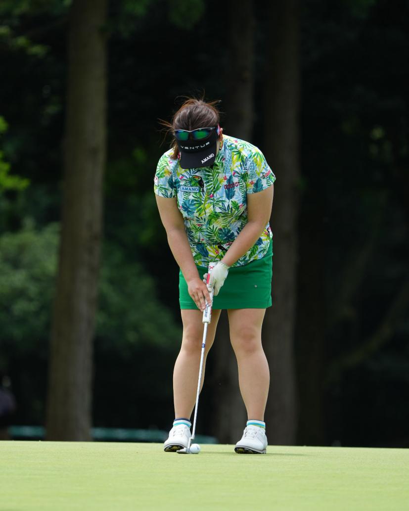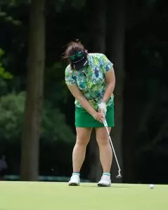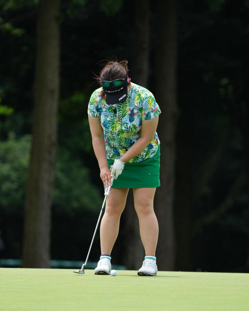 吉田弓美子のパッティングストローク(正面)|フォロー①