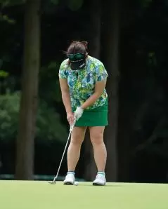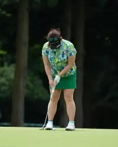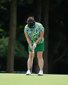 吉田弓美子のパッティングストローク(正面)|フィニッシュ