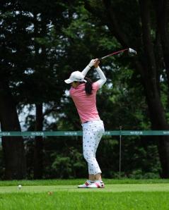 堀琴音のドライバースイング(斜め前方)|フォロー①