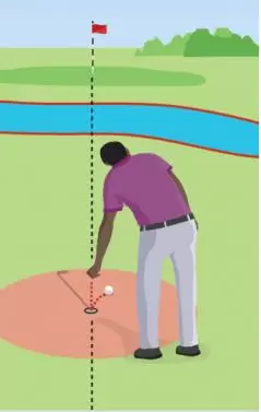 ● 元のボールの箇所とホールを結んだ後方線上にドロップ