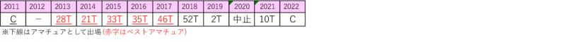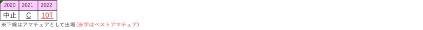 主催者推薦/メルセデスランキング105位/7回目の出場[Best:4T(2022)]