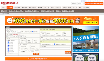 - 楽天GORA – 一人予約