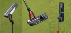その中で、一際目を惹かれたのがオデッセイの三角ネックのパターだ。どう考えても、これは「トラスの対抗馬として開発されたモデル」だろう。トーナメント会場で試打をすることは叶わないので、練習グリーンに並べられていた新しい三角ネックパターを観察させてもらった。
