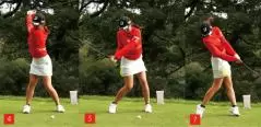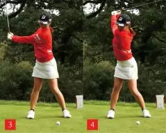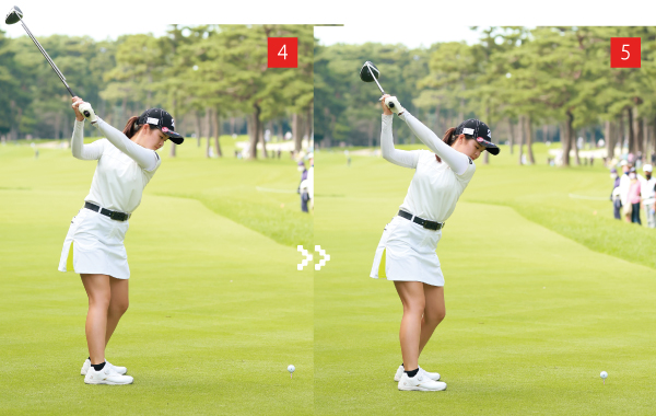 バックスイング(写真3、写真4)を見ても、手首のカタチは変えずに体の回転だけでトップを作っています。とても19歳とは思えない完成度の高いスイングです。