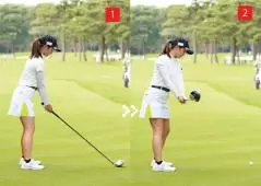 スリムな体型でも平均243ヤード!左足を斜めにすることで、「左のカベ」になる