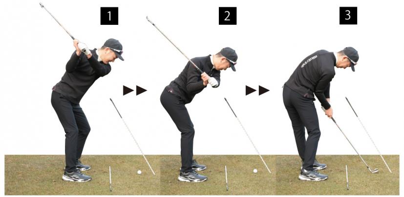 前傾角度を意識することで球が枠の中に収まるようになり、1ラウンドで2打くらいはスコアがよくなりました。