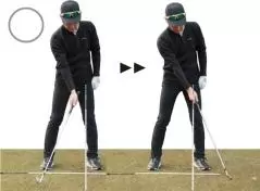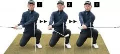 高橋さんが1Wやロングアイアンが真っすぐ飛ばせないのは、ショートアイアンに比べて遠心力が大きく、とくに手元が浮きやすいからです。このドリルを続けることで苦手意識も解消できるはずです。(小暮)