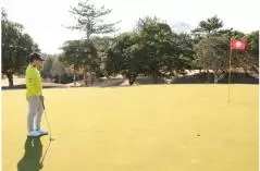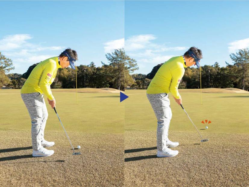しかし傾斜を読み切れず、ボールが右に曲がるのか左に曲がるのか、わからないケースがあります。このような場面では、立ち位置(グリーンを読む場所)をズラすのが効果的。