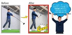 (左)手首に柔軟性がなくクラブを押さえ込んでしまっています!