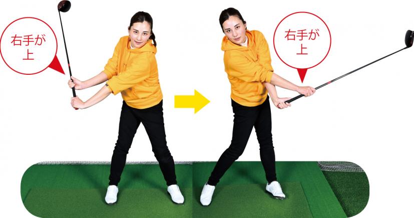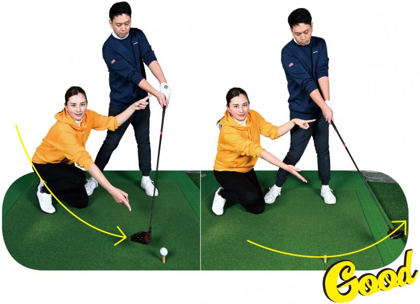 (右)手首を柔らかく使えればヘッドは自然と走ります!