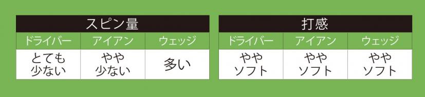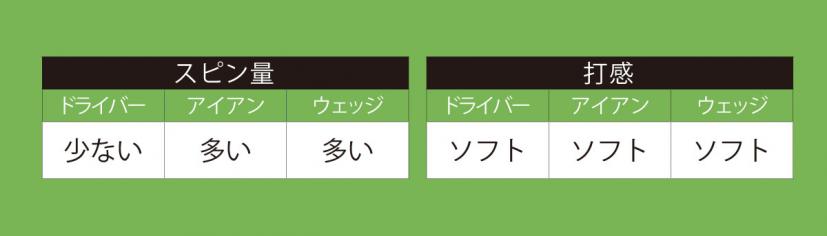 すべての番手でソフトな打感が得られ、ロングショットでは低スピンで曲がりを抑えて飛ばせるモデル。