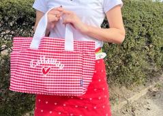 ギンガムチェックが目立って可愛いこちらのカートバッグ。
