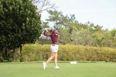上田桃子のドライバースイング(正面)|フォロー①