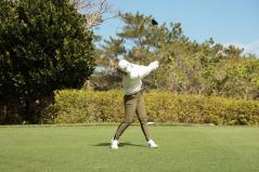 上野菜々子のドライバースイング(正面)|フィニッシュ