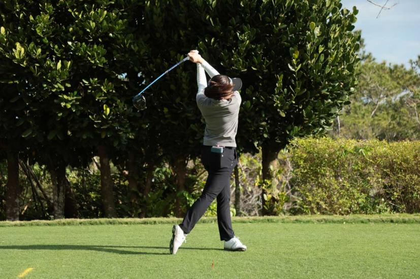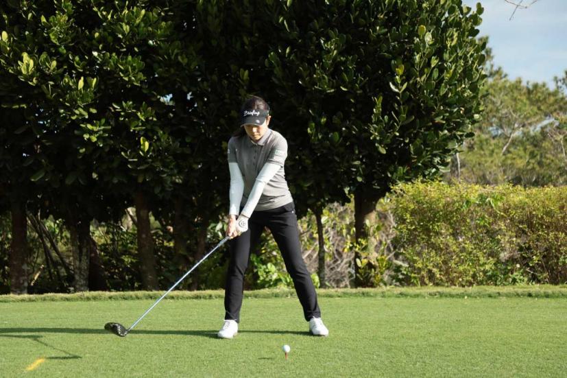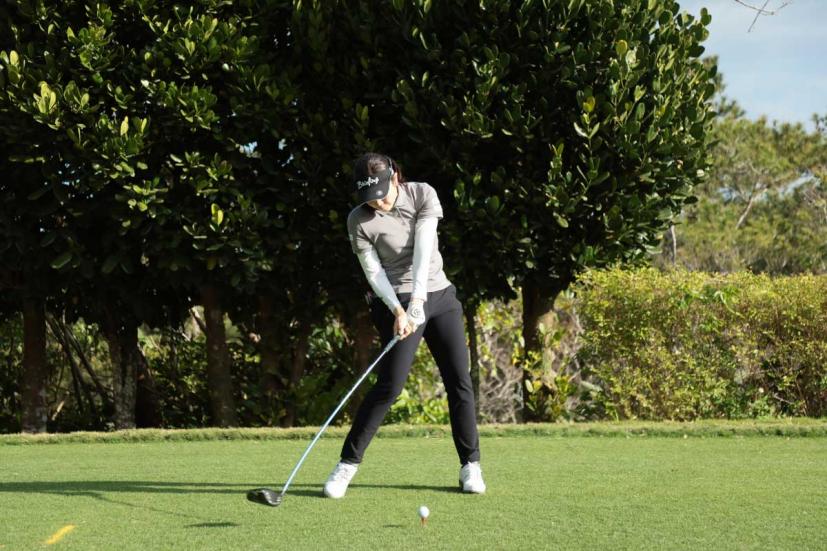 仲宗根澄香のドライバースイング(正面)|バックスイング①