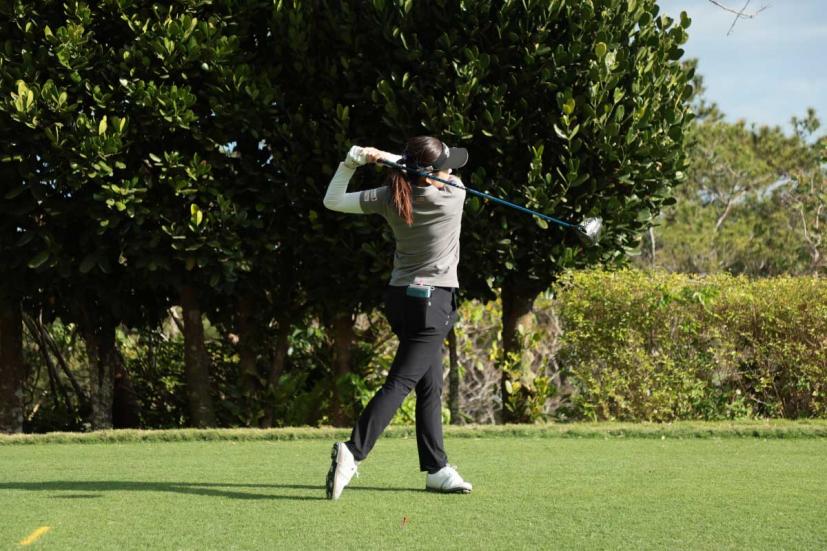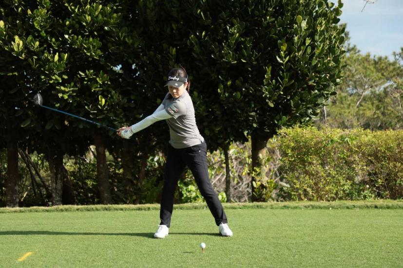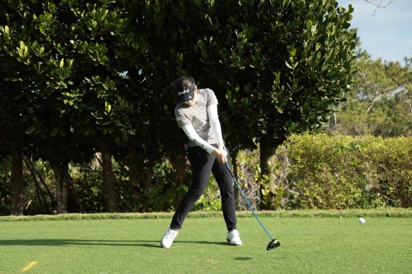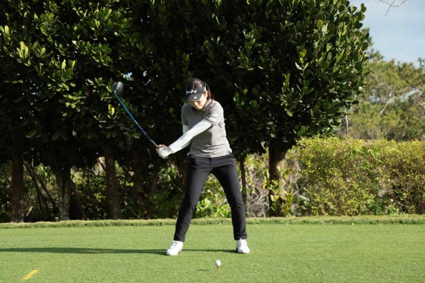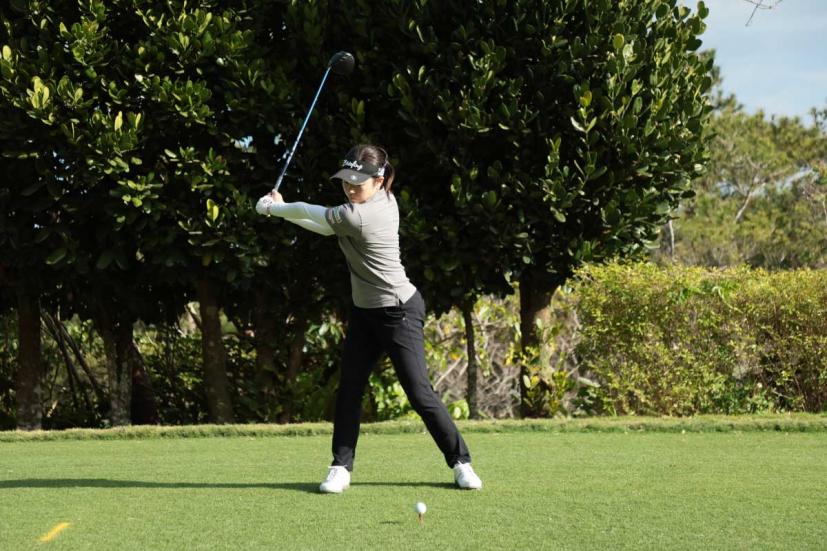 仲宗根澄香のドライバースイング(正面)|フォロー①