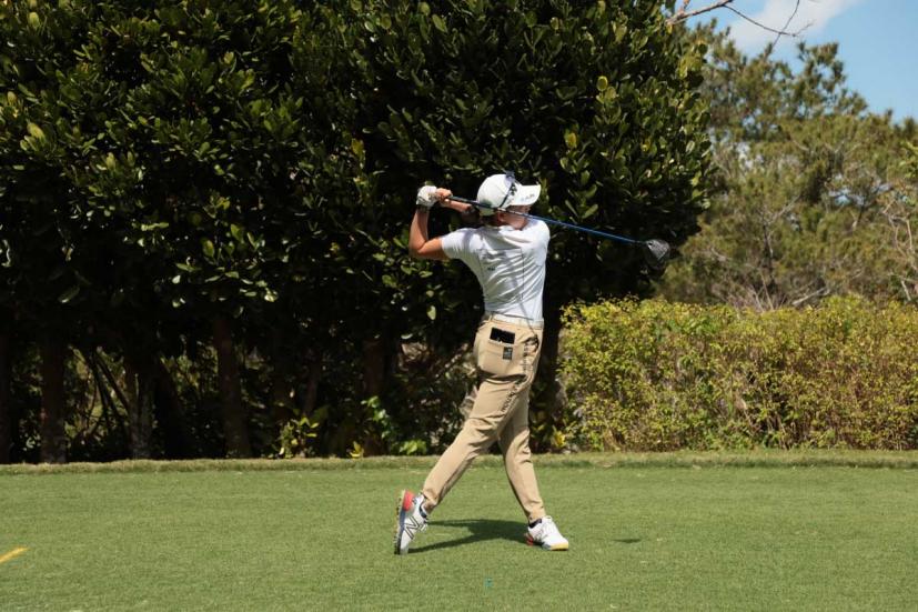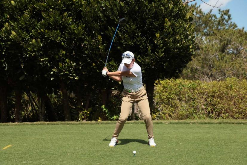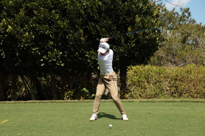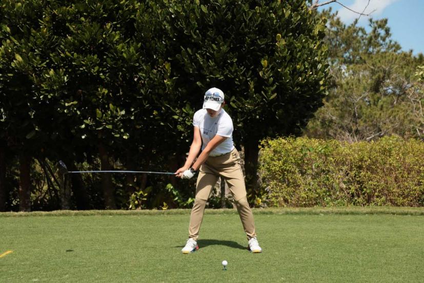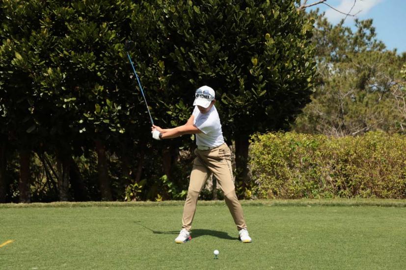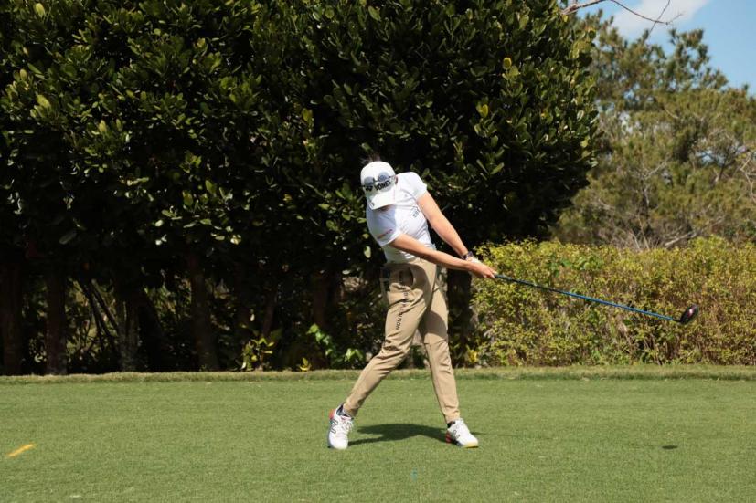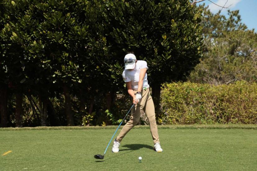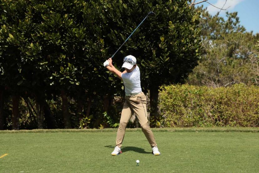 岩井千怜のドライバースイング(正面)|フォロー①