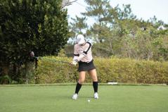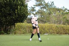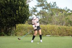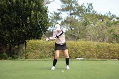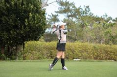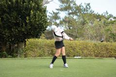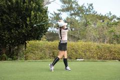 高橋彩華のアイアンスイング(ラフからのアプローチ)連続写真。初日、2日目にビッグスコアを出すことの多い高橋。試合序盤の...