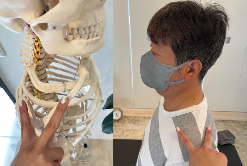 山本 そうなんです、かなり高い位置にあるんですよ。その骨を意識しながら首を左右に回してみてください。