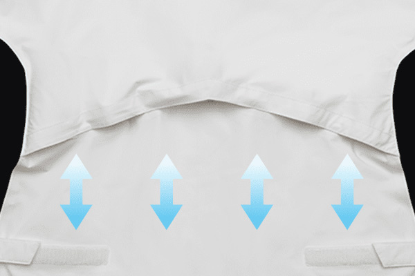 雨に強いというのは一般的に、撥水&耐水性が良く、ウェア内部のムレなどを抑える透湿性に優れているものです。生地自体にその機能を持たせたものやベンチレーション(通風穴)がそれに相当します。しかし、ゴルフの場合はこれだけでは足りません。キーポイント『動き易さ』です。いくら雨に強くてもスイング動作に影響があるようではプレーがままなりません。