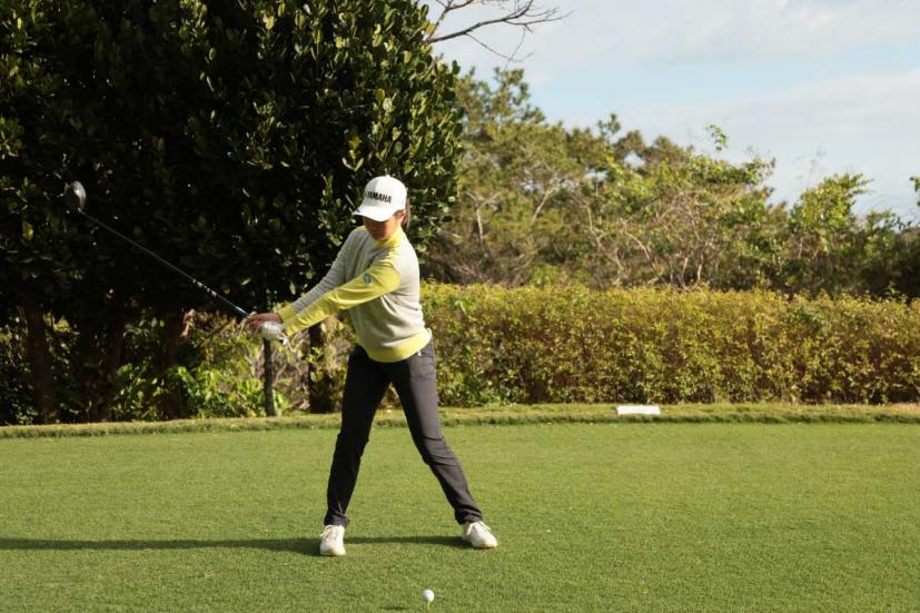 神谷そらのドライバースイング(正面)|フォロー①