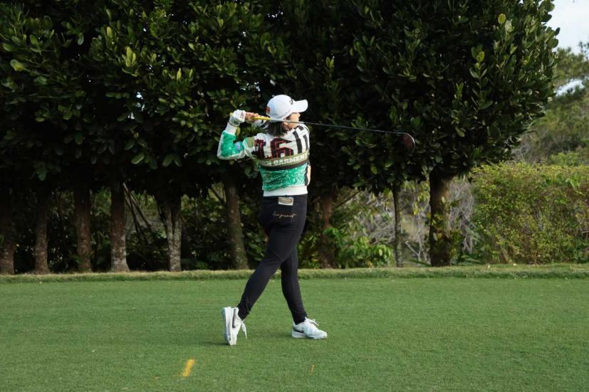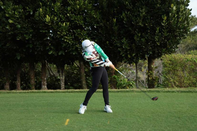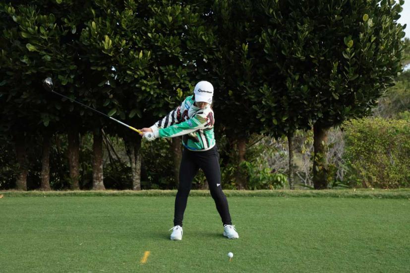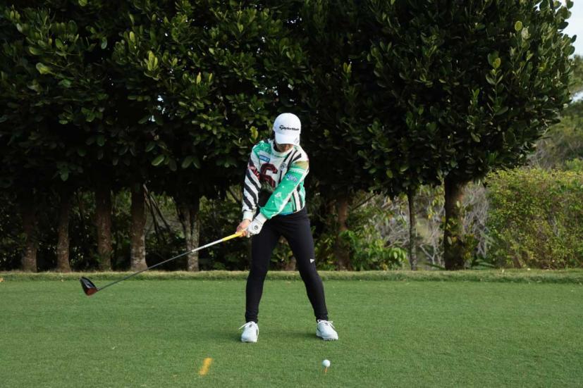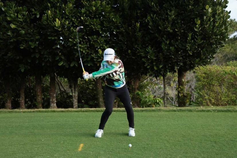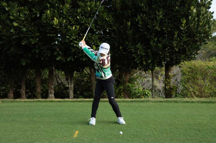 泉田琴菜のドライバースイング(正面)|フォロー①