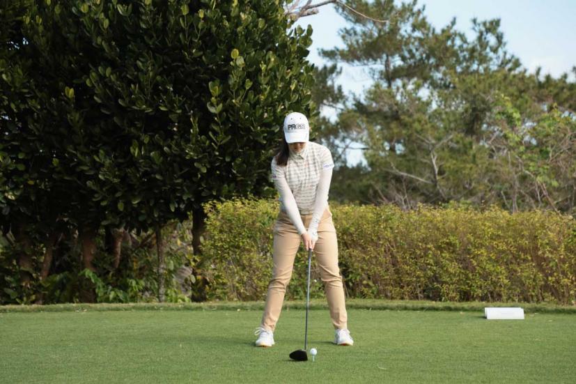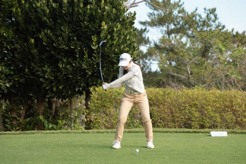 辻梨恵のドライバースイング(正面)|バックスイング①
