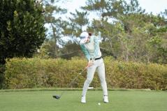 稲見萌寧のドライバースイング連続写真。 東京五輪では銀メダルを獲得し、日本ゴルフ界初のメダリストに。2022年は「リシ...