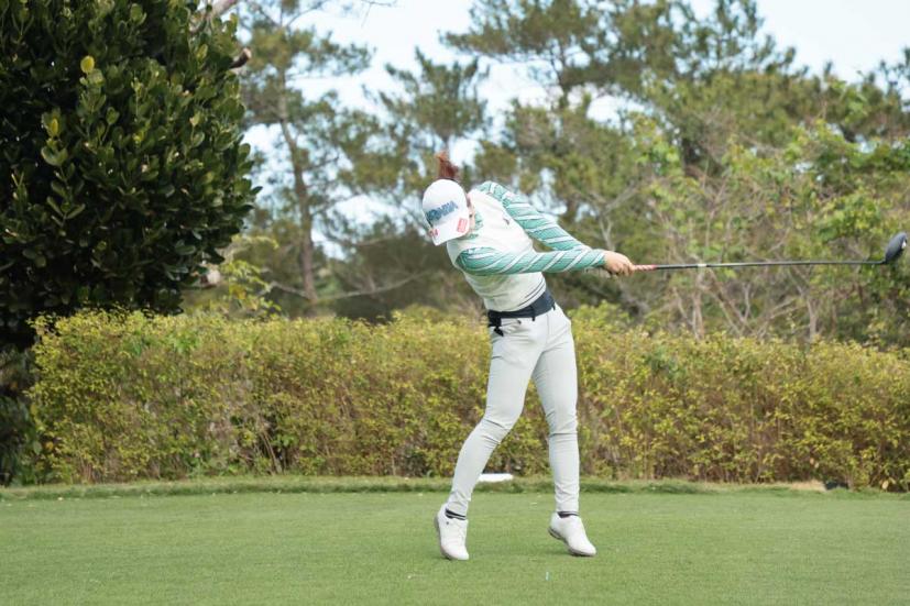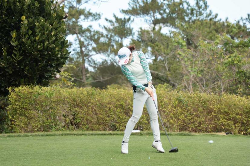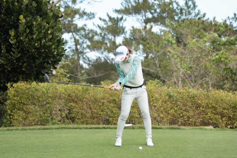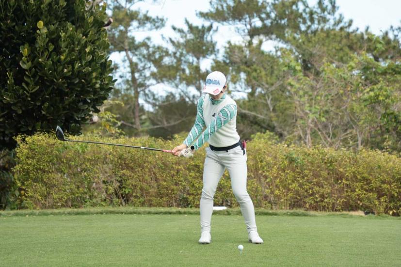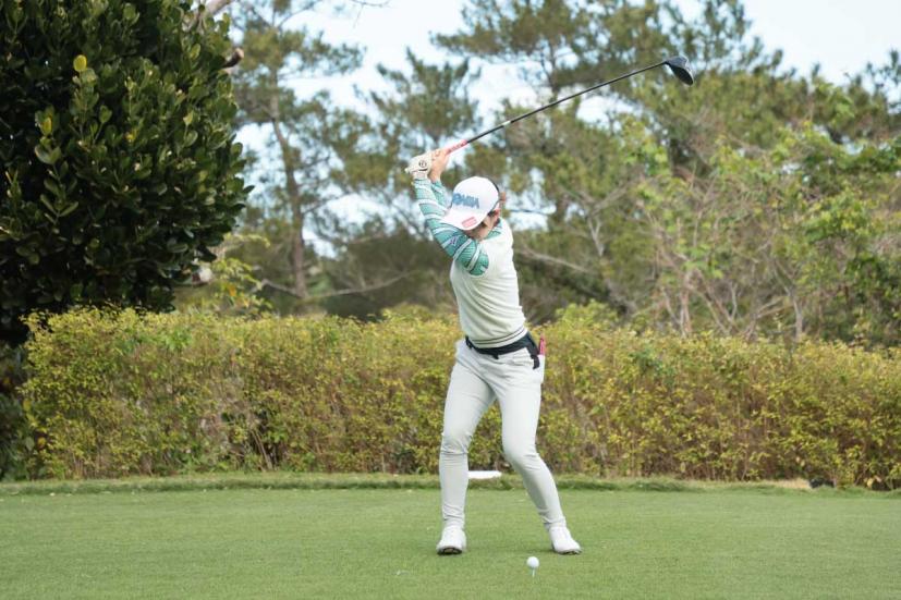 蛭田みな美のドライバースイング(正面)|フォロー①