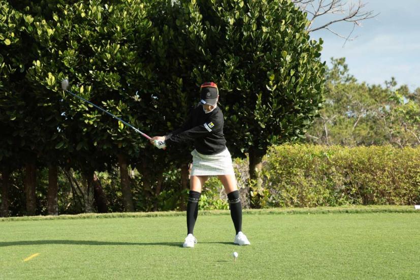 木戸愛のドライバースイング(正面)|フォロー①