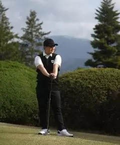 動き易いニット素材を採用したベストはラウンド中のちょっと寒い時にも便利なアイテム。
