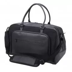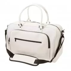耐水性のあるリペルテックスを合成皮革生地部分に採用した水に強いバッグ。取り外し可能なストラップにはショルダーパッドも搭載し、長くかついでもOK。専用のシューズポケットやファスナーポケットを多数装備しているので荷物別に分けて収納する事ができる。