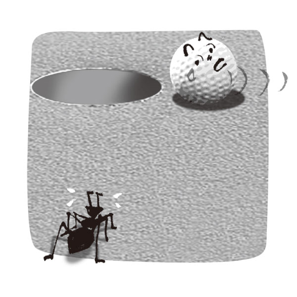 となれば、中部さんであっても60cmのパットは100回に1回は外すわけで、絶対ということはないのである。ならばどれほど短いパットでも常にしっかりとカップインしてホールアウトするという習慣は欠かせないことになる。