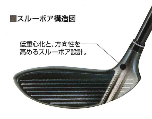 低重心を実現するために、当時のUTにはないスルーボア構造を採用。藤原氏は「シャフトが見えるソール部分の商品としての仕上げに苦労した」と話している。
