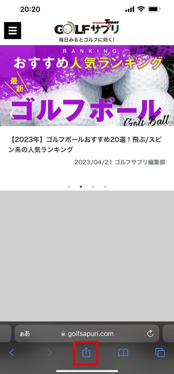 ①Safariブラウザでゴルフサプリへアクセス