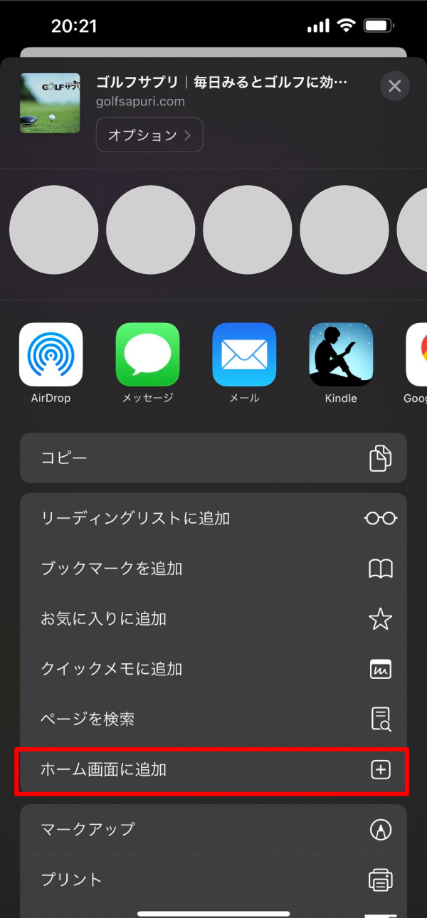 赤枠の<ホーム画面に追加>をタップ
