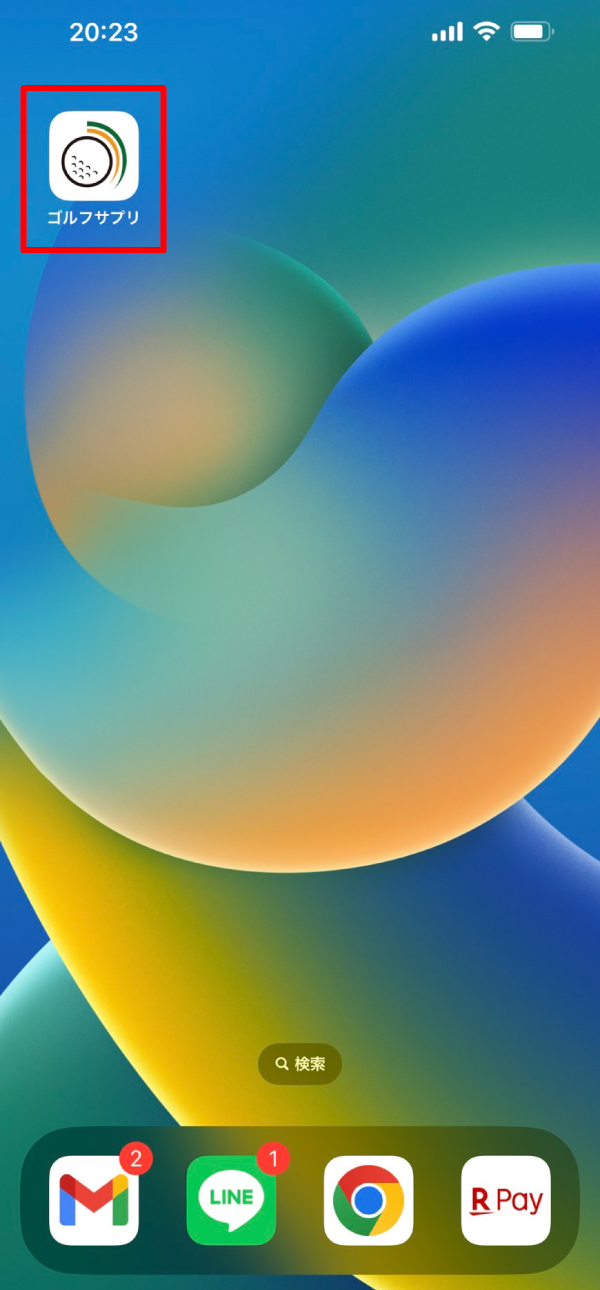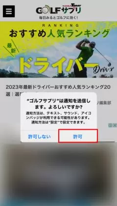 ①ホーム画面に追加したアイコンをタップし、ゴルフサプリサイトを開きます