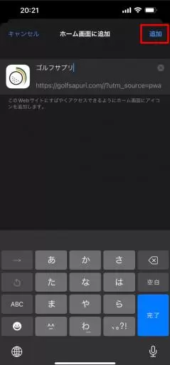 ④ホーム画面に追加の確認画面の<追加>をタップ