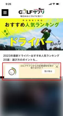 ②画面下部に表示される通知許可エリアより、<受け取る>をタップ