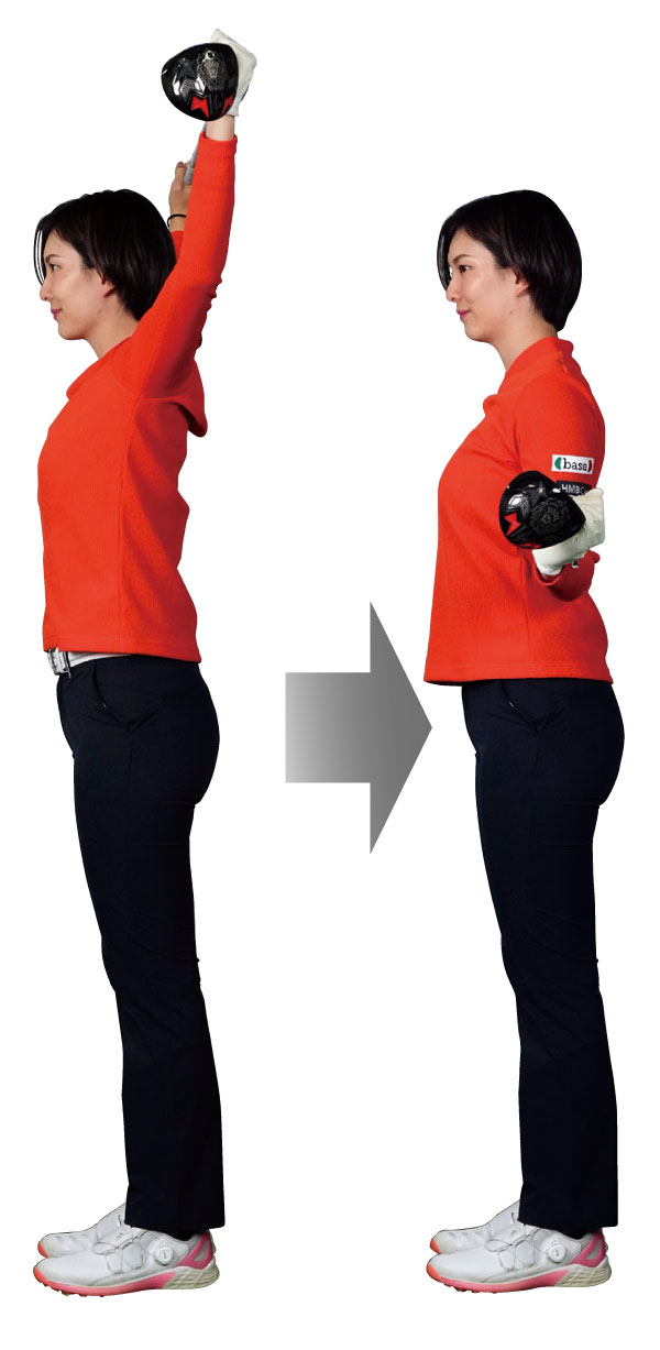 クラブを背中側に下ろすことで肩甲骨をストレッチ