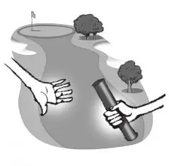 このことを陸上競技のリレーに例える人もいる。ティショットを打つ第一走者はコースを外れるOBなどは打たず、セカンドショット地点にいる第2走者にしっかりとバトンを渡す。第2走者はグリーンにいる第3走者に転ばないように走ってバトンをつなぐ。第3走者はカップ近くにいる第4走者にバトンをゆっくり渡す。ラストの第4走者はカップというゴールに向かって確実に歩いてホールアウトするのだ。